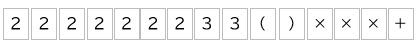 下記の15枚のカードをすべて使って、答えが2026になる式を作成しなさい。数字は32や223など、何ケタでも可。